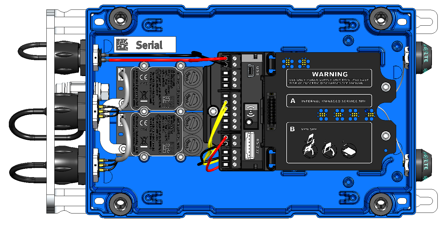 - Entnehmen Sie die Power Supply Unit aus dem myDatalogEASY IoT ATEX . Verwenden Sie dazu die Lasche zur Entnahme der Power Supply Unit.