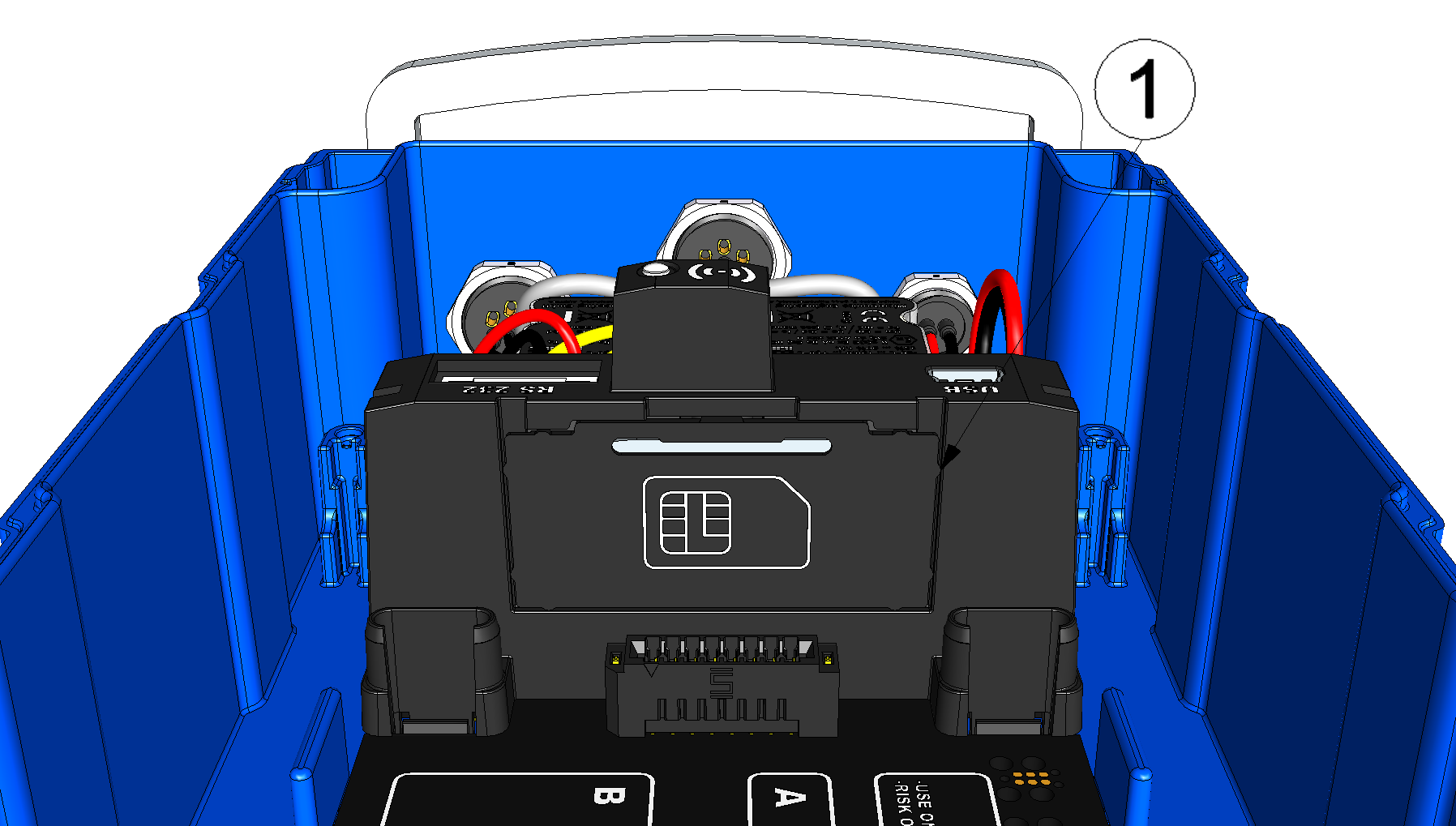 1 Abdeckung des SIM-Slots - Setzen Sie die SIM-Karte wie in Abbildung B auf der Leiterplatte des myDatalogEASY IoT ATEX dargestellt ein.