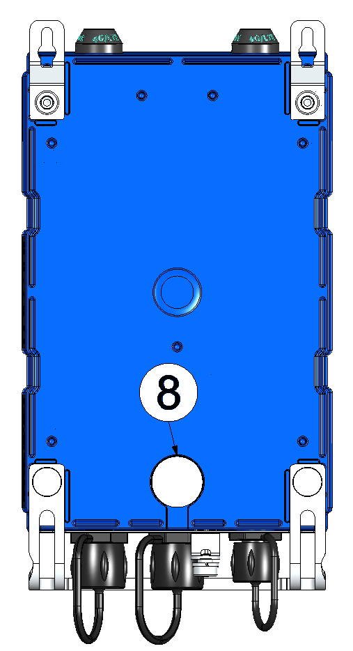 | 1 | Antennenanschlüsse (bis zu 2 x FME-M) | 5 | Erdungsanschluss (Mindestanforderung an das Erdungskabel: 4 mm²) |