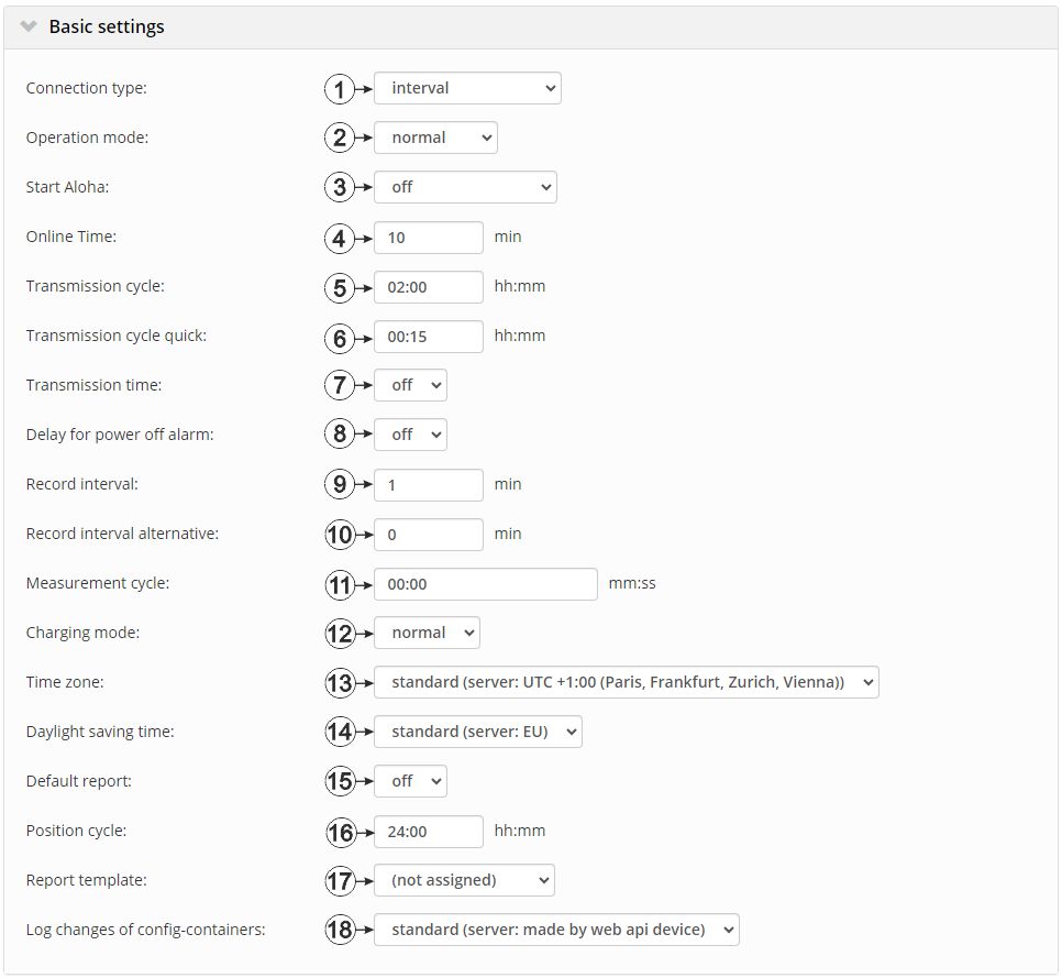 | 16 | Position update interval (00:00 positioning is completed with every connection) | |