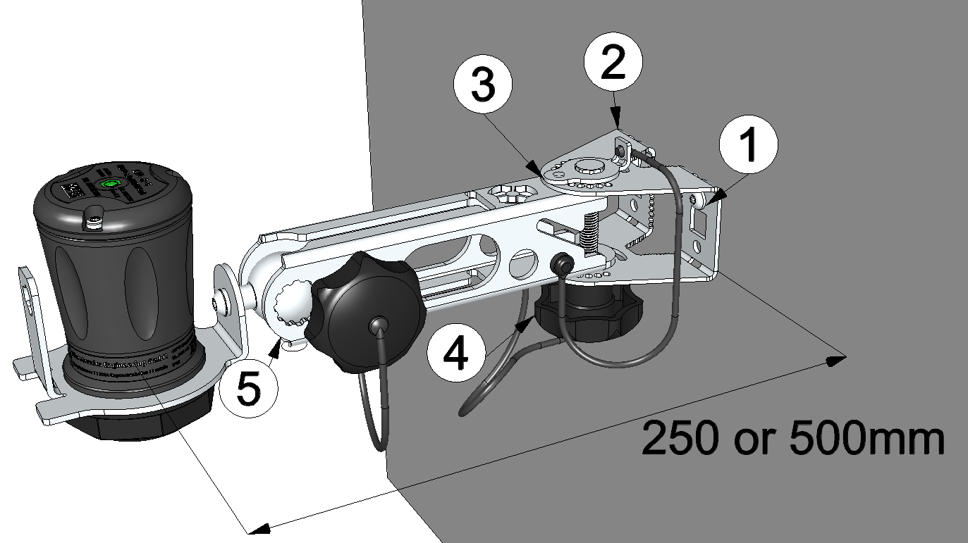 | 2 | Flange for wall mounting | 5 | Swivel arm |
