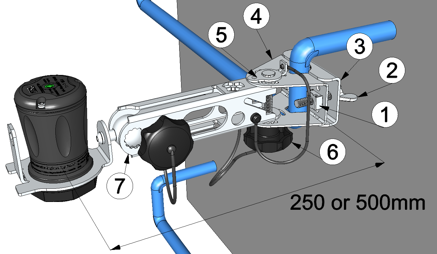 - Position the flange on the strut/rod and use the clamping piece together with the wing